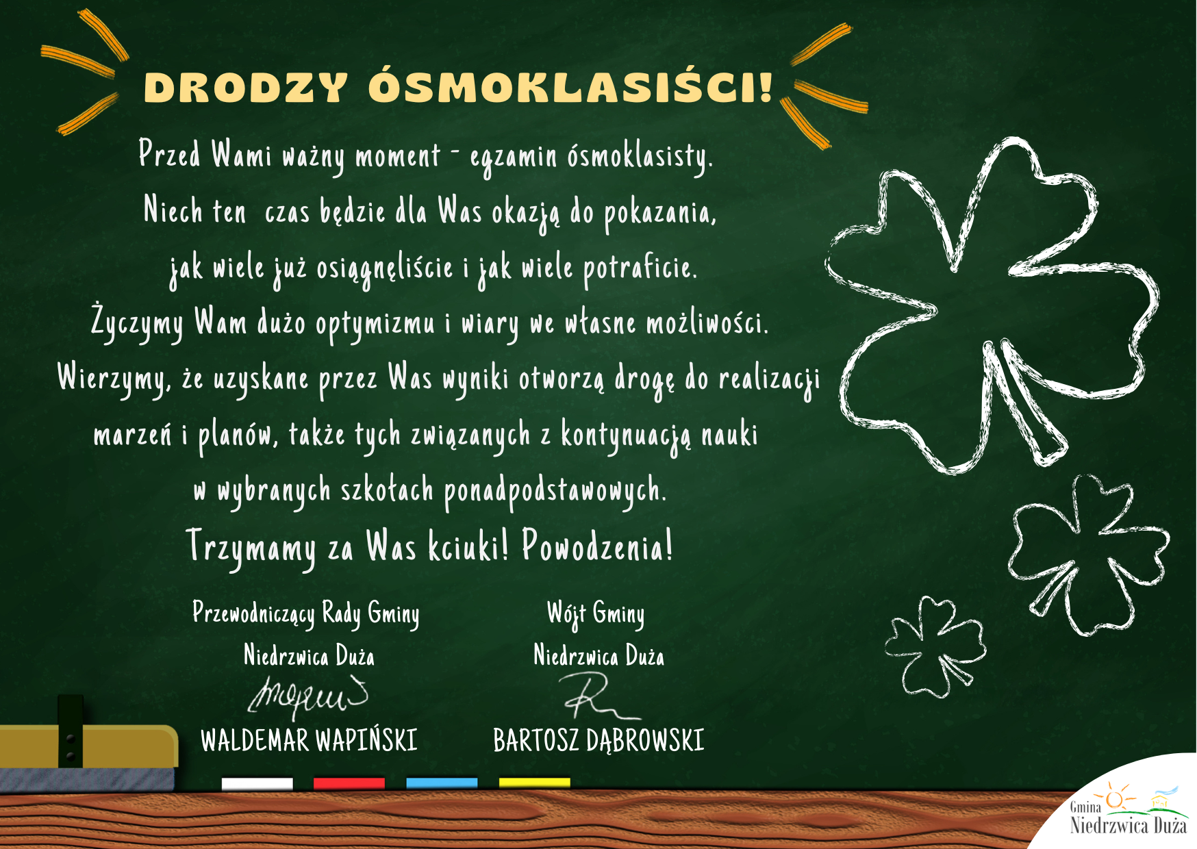 Ósmoklasiści, powodzenia na egzaminach!
