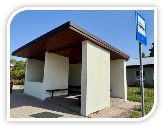 W ramach inwestycji wykonano szereg istotnych prac, mających na celu zabezpieczenie konstrukcji i poprawę stanu technicznego wiat przystankowych, które na co dzień służą naszym mieszkańcom. Przedsięwzięcie obejmowało naprawę i malowanie ścian oraz zabezpieczenie powierzchni powłoką antysprejową, demontaż starego pokrycia dachowego i montaż nowego pokrycia z blachy trapezowej, remont ławek, montaż tablic na rozkład jazdy, a ponadto uzupełnienie i wyrównanie kostki brukowej w obrębie wiat.