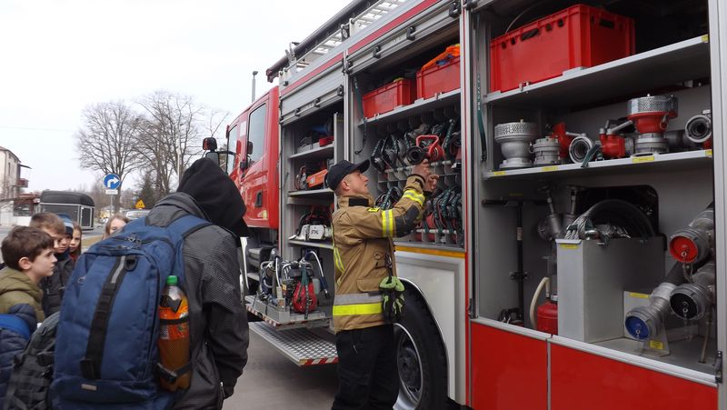 Po zakończeniu części oficjalnej Pan Marcin Jośko zaprosił wszystkie dzieci do obejrzenia samochodu strażackiego. Starszy Aspirant pokazał jakie funkcje pełnią poszczególne elementy samochodu, zademonstrował sygnały świetlne i dźwiękowe, a każde dziecko mogło wejść do wnętrza samochodu i usiąść na miejscu kierowcy.