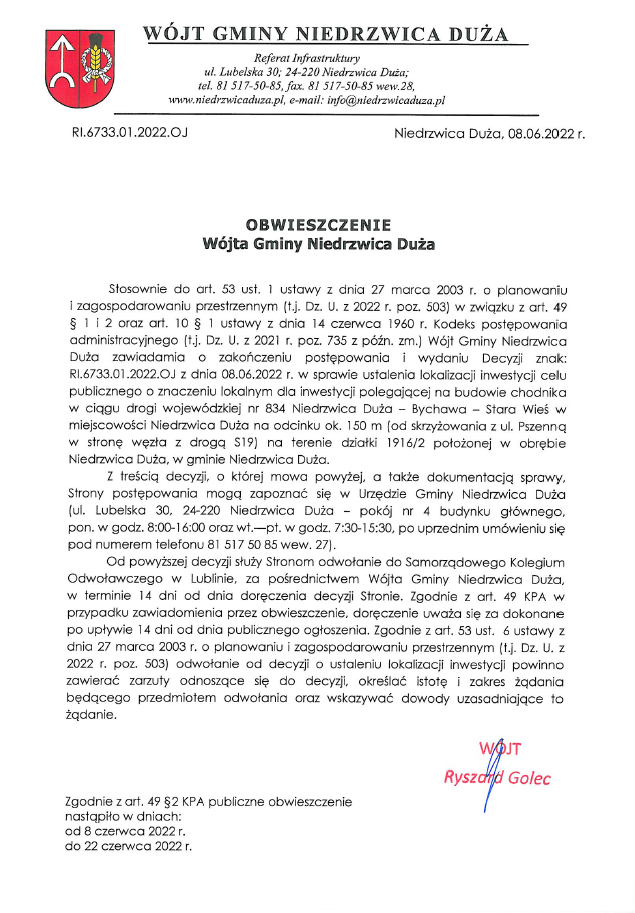 Obwieszczenie dostępne poniżej oraz w załączniku.