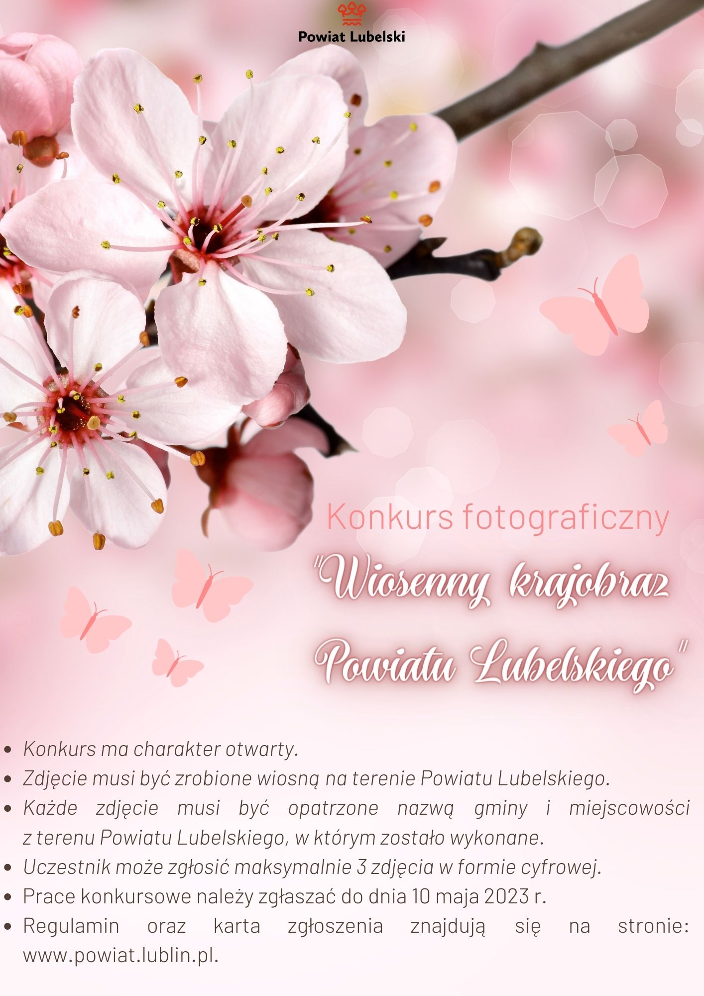 Konkurs fotograficzny „Wiosenny krajobraz Powiatu Lubelskiego” jest okazją do zaprezentowania tematycznych fotografii szerokiej grupie odbiorców oraz pokazanie walorów krajobrazu Powiatu Lubelskiego.