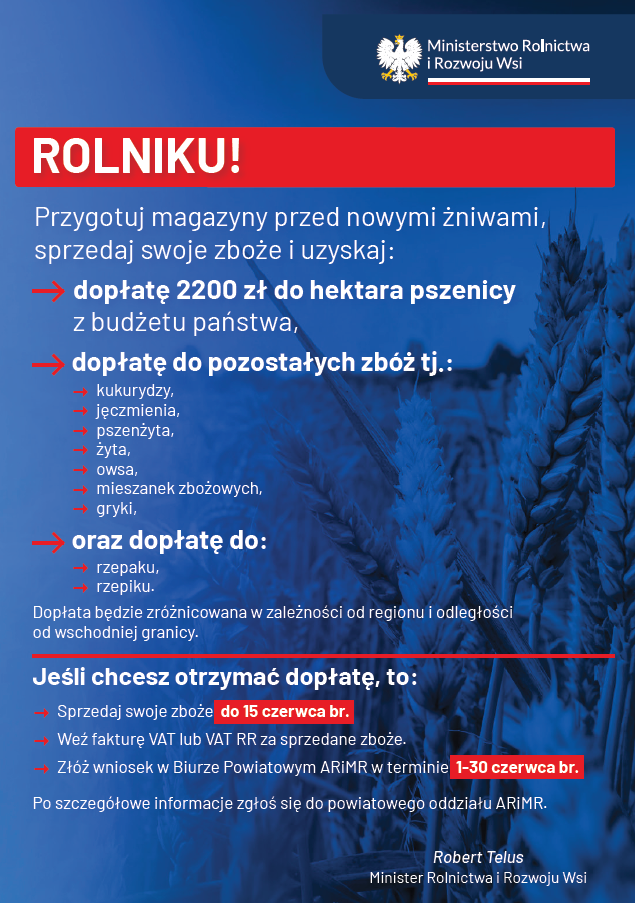 Informacja MRiRW: Dopłaty do zbóż w 2023 rokuArchiwum