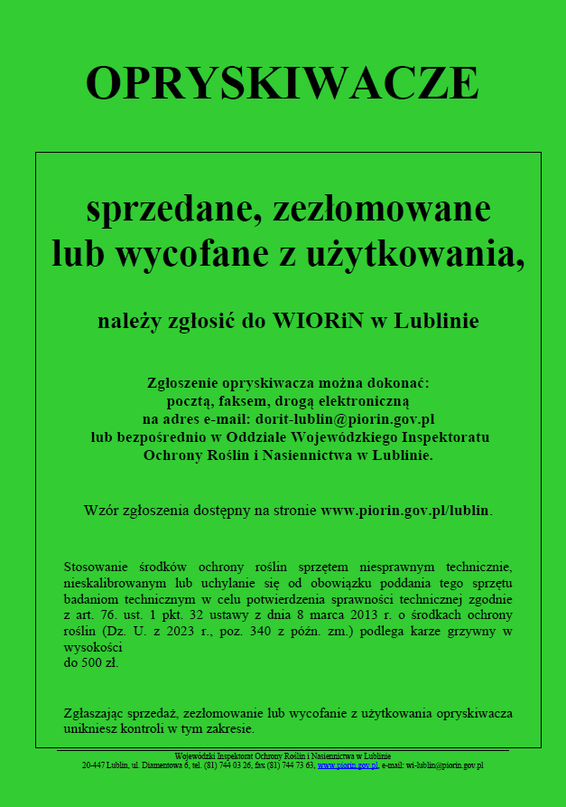 Komunikat: "Weryfikacja opryskiwaczy"Archiwum
