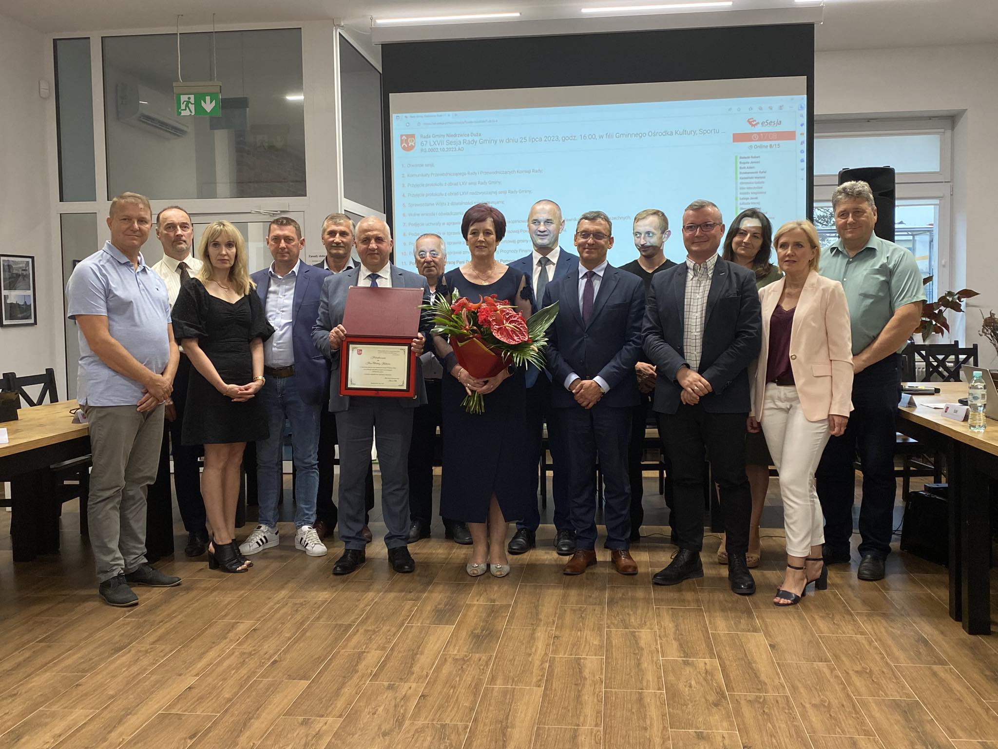 25 lipca 2023 r. podczas LXVII Sesji Rady Gminy Niedrzwica Duża, Wójt Gminy Niedrzwica Duża Pan Ryszard Golec podziękował za wieloletnią współpracę odchodzącej na emeryturę Dyrektor Ośrodka Pomocy Społecznej w Niedrzwicy Pani Elżbiecie Kędziorze.