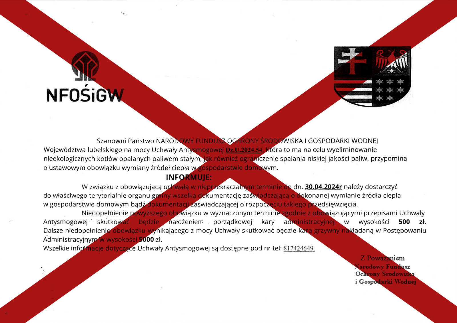 Wojewódzki Fundusz Ochrony Środowiska i Gospodarki Wodnej w Lublinie ostrzega: