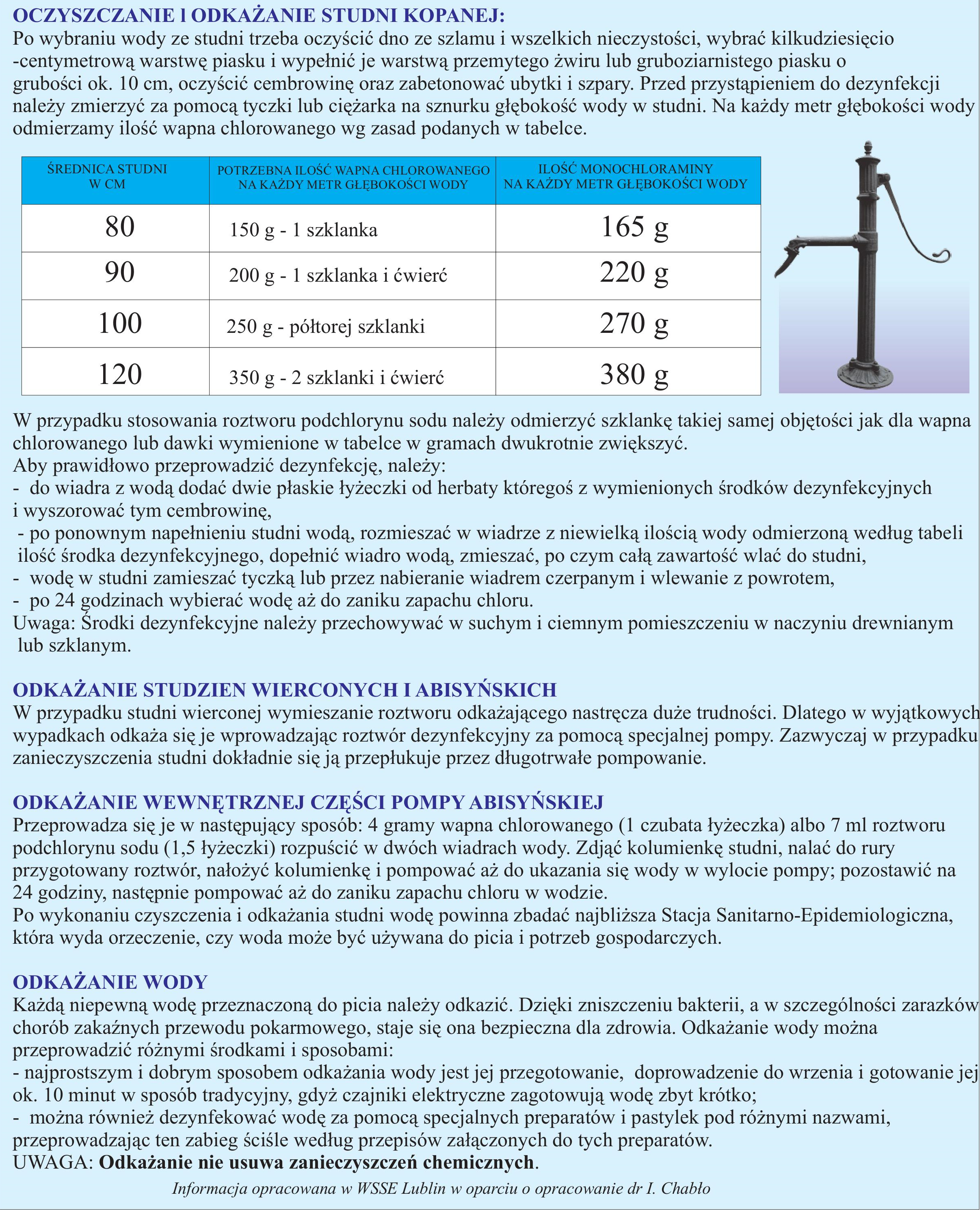 Poniżej publikujemy ulotkę informacyjną o sposobach odkażania indywidualnych ujęć wód.