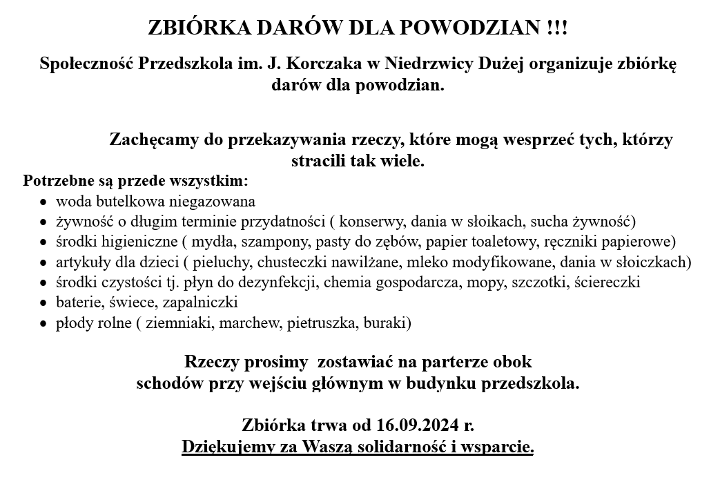Zbiórka darów dla powodzian!Archiwum